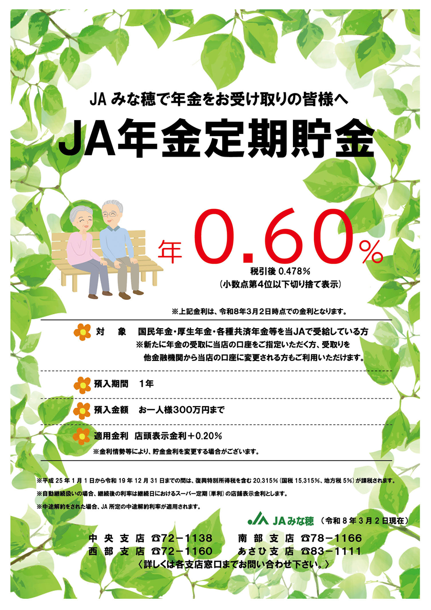 ※年金のお受取り確認のため、お手数ですが当JAの年金受給通帳、もしくはJAバンクアプリをご提示ください。