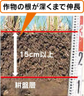 ・ 深耕により根域が拡大することで、根が深く伸長し、肥料の吸収効率が高くなります。それにより安定した収量の確保と品質向上が見込まれます。