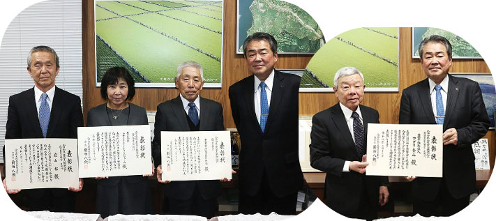 JA管内の4生産者が2月13日、JA本店を訪れ、「令和7年度富山県農業振興賞」の受賞を矢木組合長に報告しました。受賞されたのは米部門で農事組合法人アグリ金山、岩山裕さん、園芸部門で黒東電照菊出荷組合、複合経営部門で株式会社Stay goldてらだファームです。