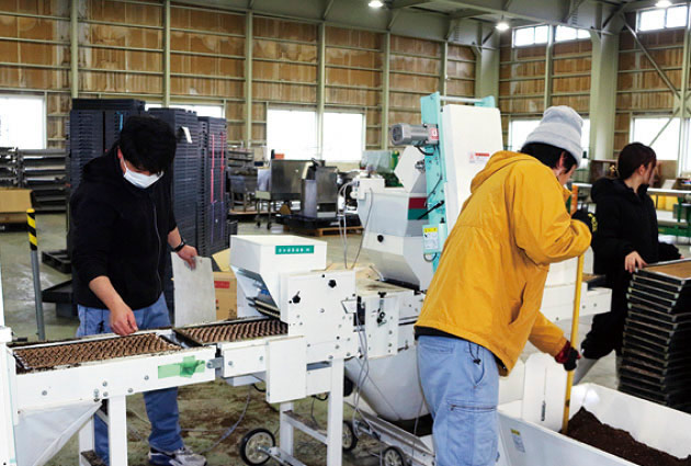 JAは2月26日、夏ネギ「夏山一本太」と秋冬ネギ「夏扇4号」の播種作業をJA白ネギ選別調製施設で行いました。JA営農指導員らは、播種機を使って苗箱約300枚に種をまきました。播種作業を行った米田吉仁営農指導員は「今年も高温が予想されるので、天候を先読みして管理を徹底し、高品質な白ネギを出荷したい。」と話しました。定植開始は夏ネギで4月上旬、秋冬ネギで4月中旬からとなる見込みです。