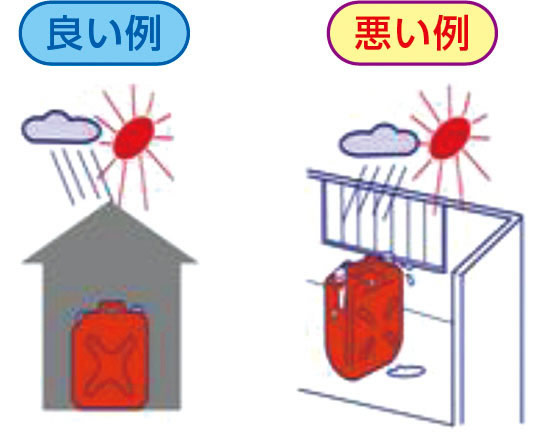 紫外線を通しにくい色付の灯油専用ポリタンク(推奨マーク付)を使用する。